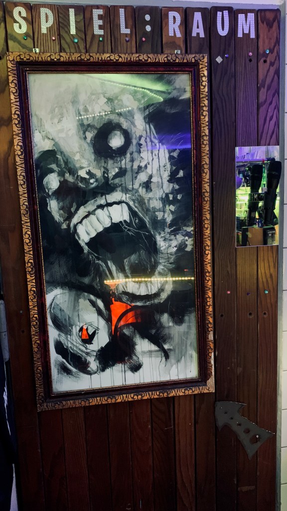 das Spiel |::| Raum-Studio ist im Kunstzentrum UNIKOM angesiedelt, einer eher freien Gruppe verschiedenster Künstler, die im Universitätspark 10 ihre Ateliers untergebracht haben. Das Gebäude war bis in die späten 80er Jahre Teil der Bismarck-Kaserne der US-Army. Vor kurzem wurden ca. 30 Betten, die bestimmt über 30 Jahre einen Kellerraum belegten, durch die Stadtverwaltung entsorgt. Einerseit „Leider“ (gute Eichenbettgestelle!!) – anderseit wurde dadurch auch Platz geschaffen. Die Bettlatten wurden „zum Glück“ nicht entsorgt, die wurden zu einem großen Teil von mir gereinigt und verarbeitet. Sie fanden ihre neue Bestimmung in Form eines Podestes und in Form der neuen Innentür des Spiel |::| Raum-Studio!