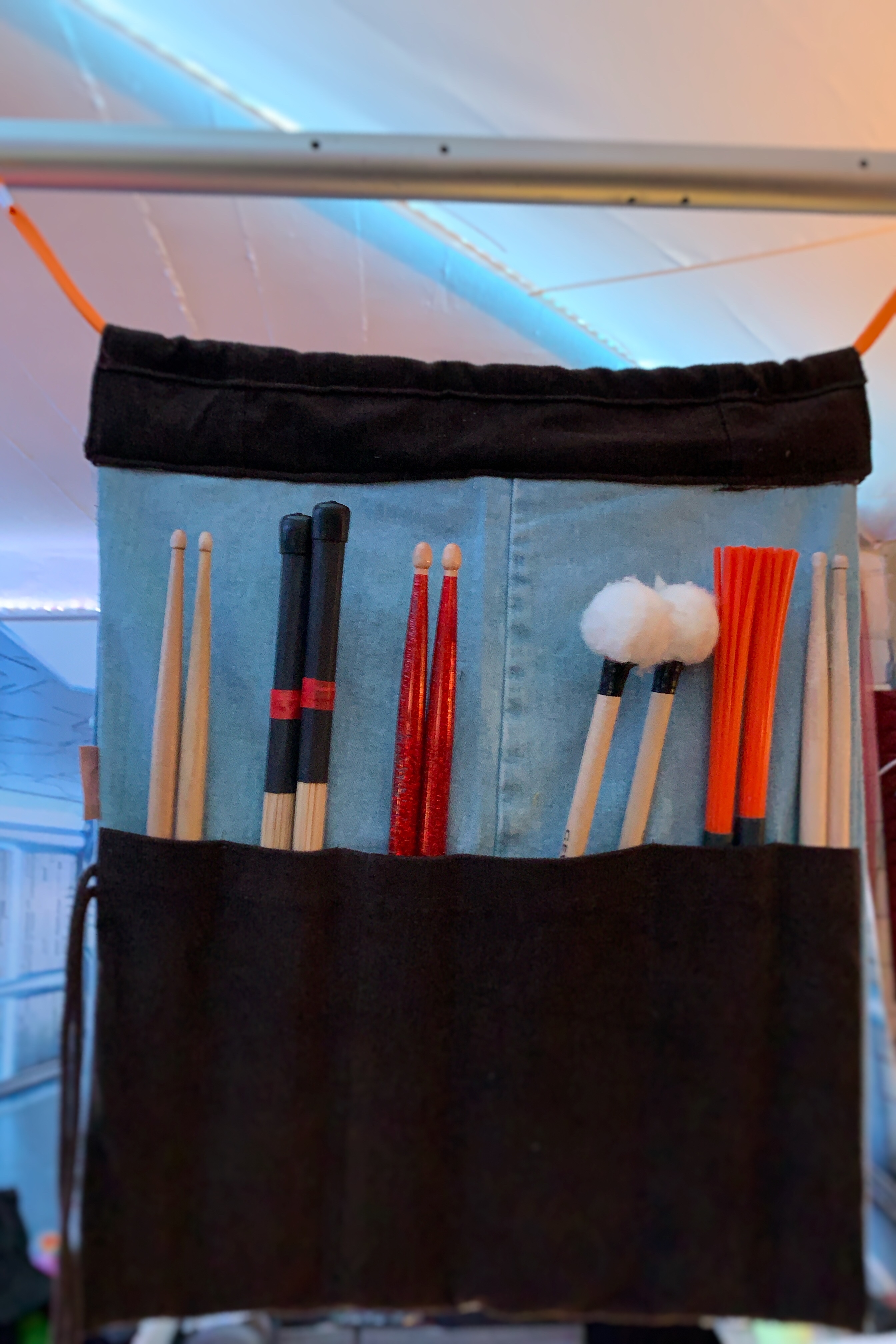Bei einem gemeinsamen Gespräch, inspirierte ich Regine und Linda zur Produktion von Unikaten Stocktaschen für Schlagzeuger und Percussionisten. Und seit letzter Woche gibt es sie nun!